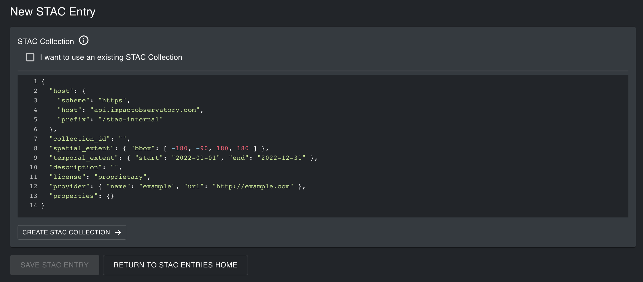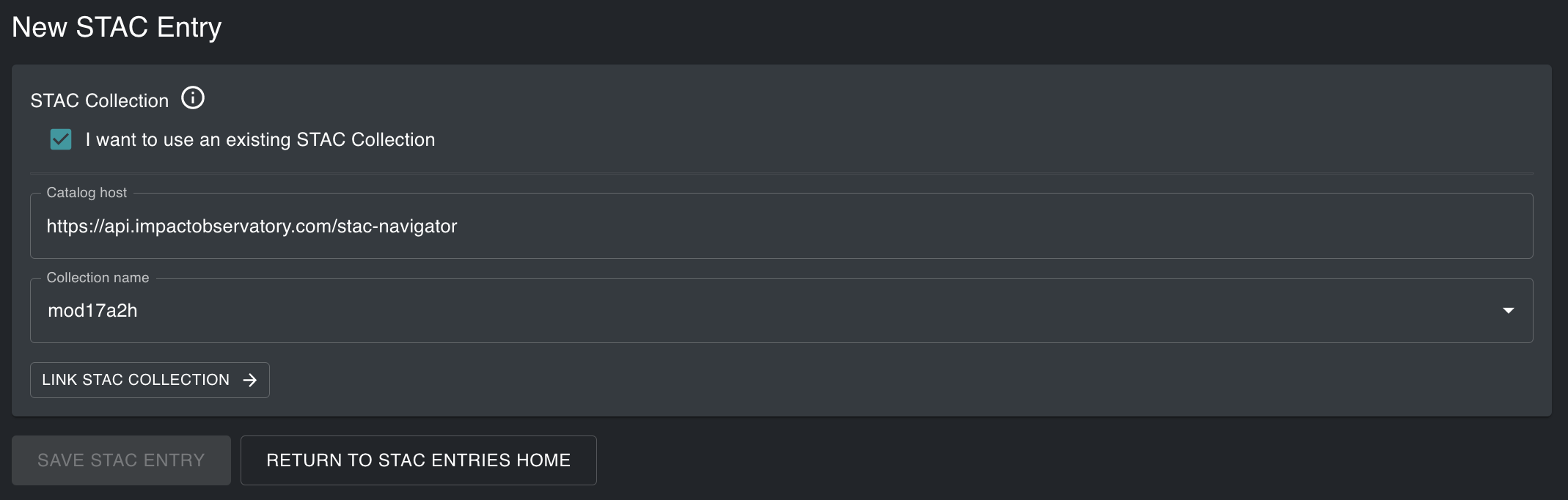 Once the STAC properties are defined, click Create STAC Collection.